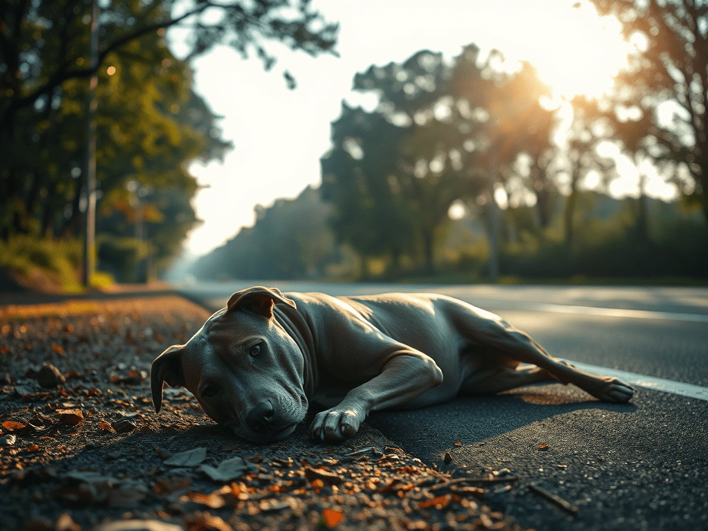 A few years ago, Tom & I were driving home. On the highway, we swerved to miss hitting a dog that someone else had hit. It was still alive, so we went back. We waved traffic away from the dog so we could pull it off the road. Tom called the police, and we sat on the side of the road for thirty minutes while the dog lay dying. With the exception of its labored breathing, it never moved. The police never came, and the dog finally died.